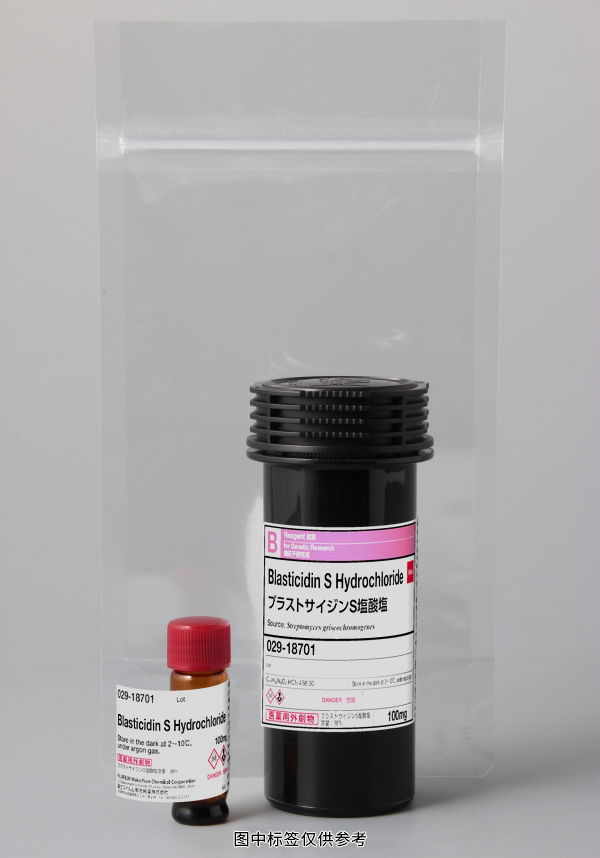 滅瘟素是一種作用于原核生物和真核生物的核苷類抗生素,可抑制原核生物和真核生物的蛋白質(zhì)合成。 在基因工程研究中,滅瘟素S可用于篩選攜帶bsr或bsd抗性基因的大腸桿菌或哺乳動(dòng)物細(xì)胞的轉(zhuǎn)染細(xì)胞。