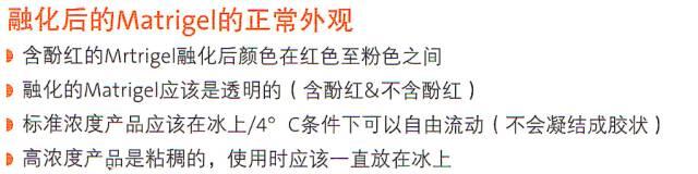 Matrigel 對溫度非常敏感,超過 10℃即開始成膠,超過 22℃成膠速度會更快。如果到貨情況正常,出現(xiàn)此種現(xiàn)象應(yīng)該是融化操作不規(guī)范或者融化期間環(huán)境溫度升高導(dǎo)致部分凝膠。請一定嚴格按照融化操作規(guī)范執(zhí)行,確保融化時保持低溫環(huán)境。